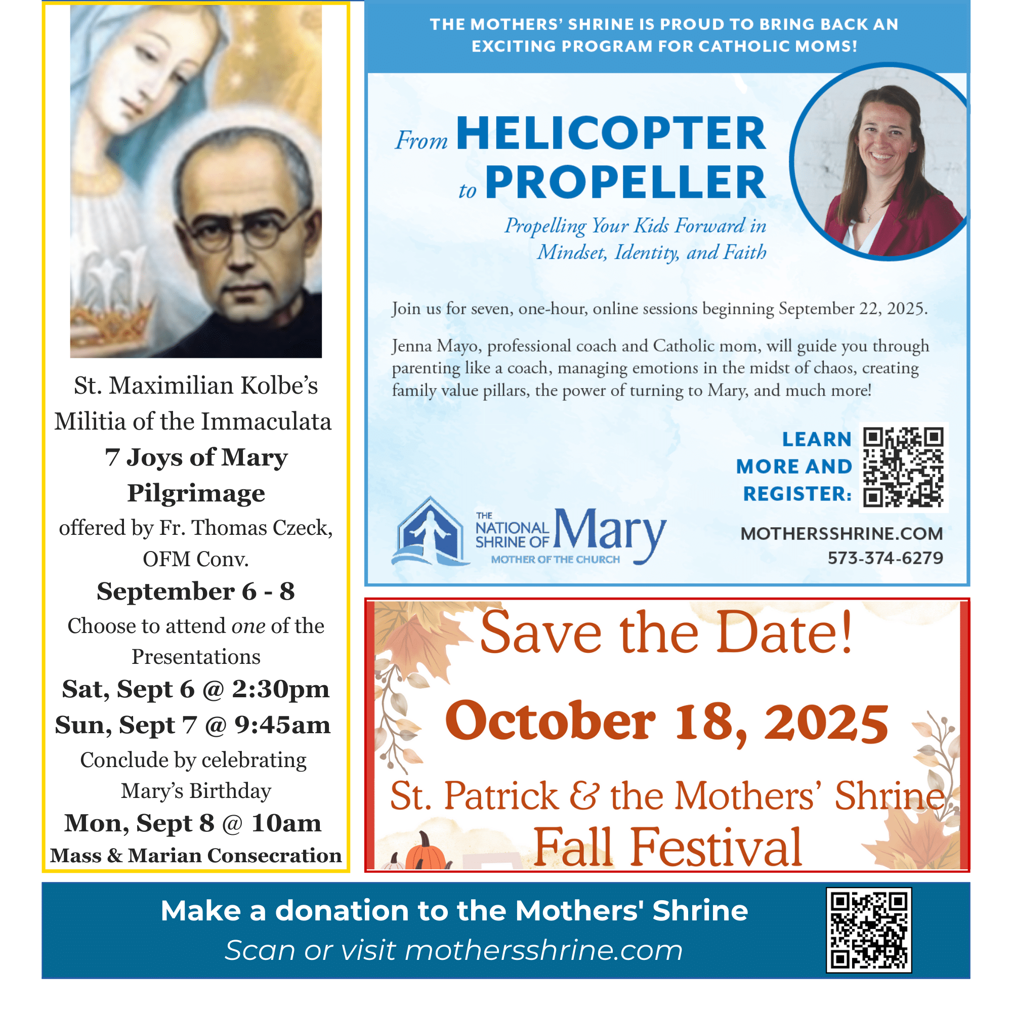 † We receive no federal, state or church funding and rely solely on private contributions and the generosity of individual donors. The National Shrine of Mary, Mother of the Church is exempt from federal income taxes under Section 501(c)(3) of the Internal Revenue Code. Your gift is tax-deductible to the full extent provided by law. EIN 43-1849868