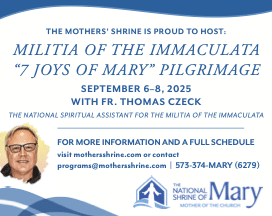 September 6 & 7: Militia of the Immaculata “7 Joys of Mary” Pilgrimage with Fr. Thomas Czeck, OFM Conv. Detailed schedule as follows: